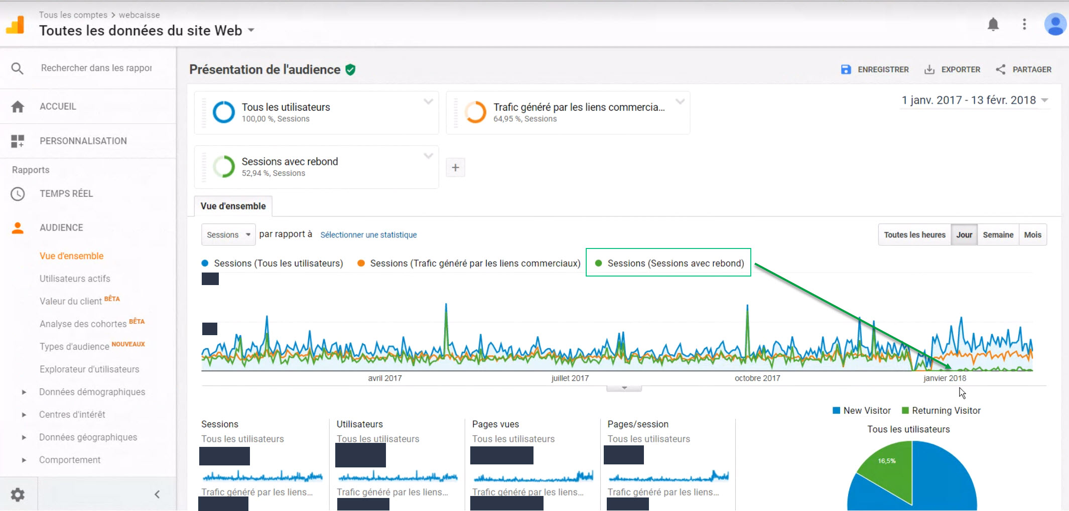 Si un site a un taux de rebond élevé, cela signifie que les visiteurs ne naviguent pas dans le site, ils arrivent sur une page puis quittent le site.